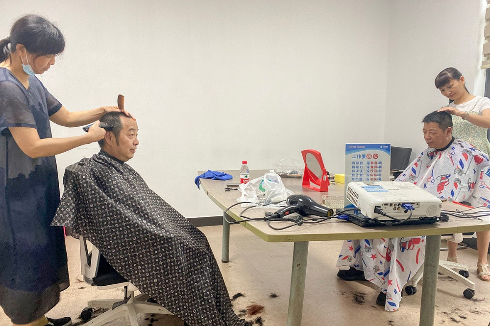 6月18日中午,公司邀請的兩位理發(fā)師來到了活動地點(diǎn),貼心地詢問這些父親們對自己發(fā)型的要求,憑借嫻熟的技藝,為他們修剪出了滿意的發(fā)型。沒有花哨時尚的造型,理發(fā)師卻“剪”出了大家的笑容,同時也“剪”出了中達(dá)新材對員工們深切的關(guān)愛。