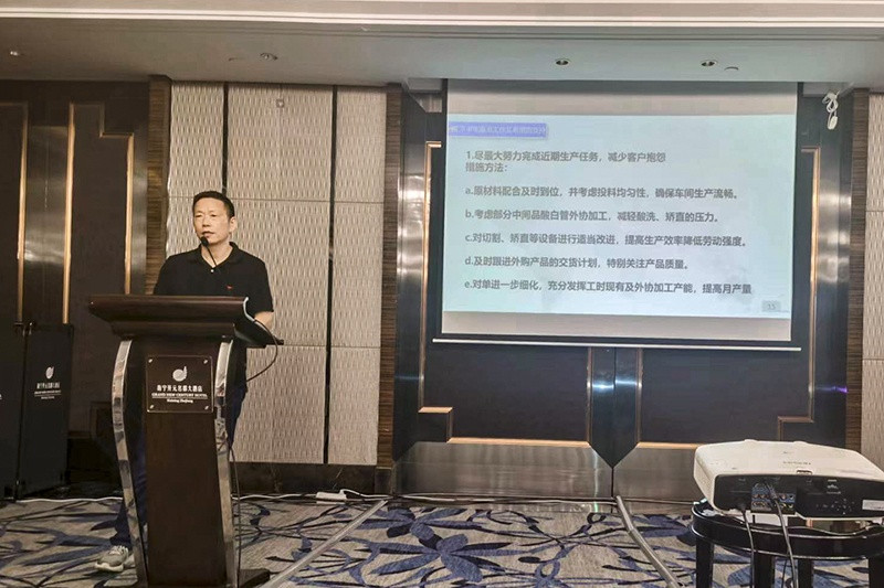 中達新材總經理吳利陽通報了公司上半年相關經營數(shù)據:銷售額完成年初既定目標的53.55%,與去年同期相比增長38.24%;利潤完成年初既定目標的54.98%,與去年同期相比增加28.1%;生產產量跟去年同期基本持平。吳總表示,在后疫情時代這樣的成績來之不易,這份成績凝結了公司上下全體員工的心血和汗水,如日方升,更進一竿,2022年對于中達新材來說是至關重要的一年,中達新材必須一鼓作氣,乘勝追擊,要通過持續(xù)推進IPO上市工作,謀劃市場策略及開發(fā)核心產品,引入全面預算管理,完成信息化項目的順利交付和運行,高標準執(zhí)行質量管理等,實現(xiàn)突破,更進一竿。